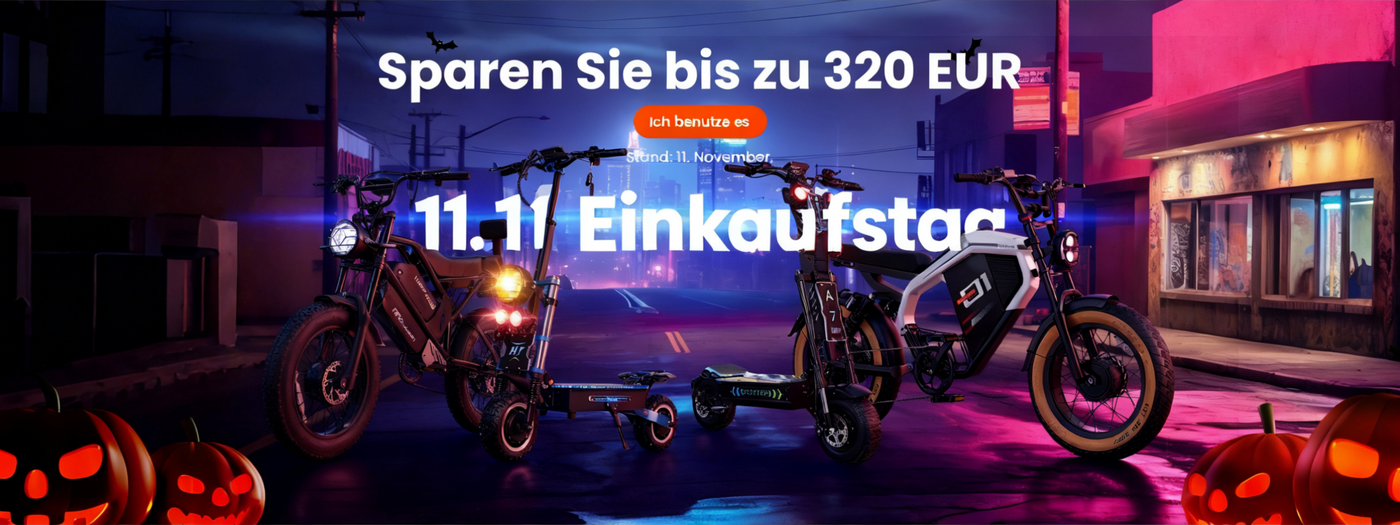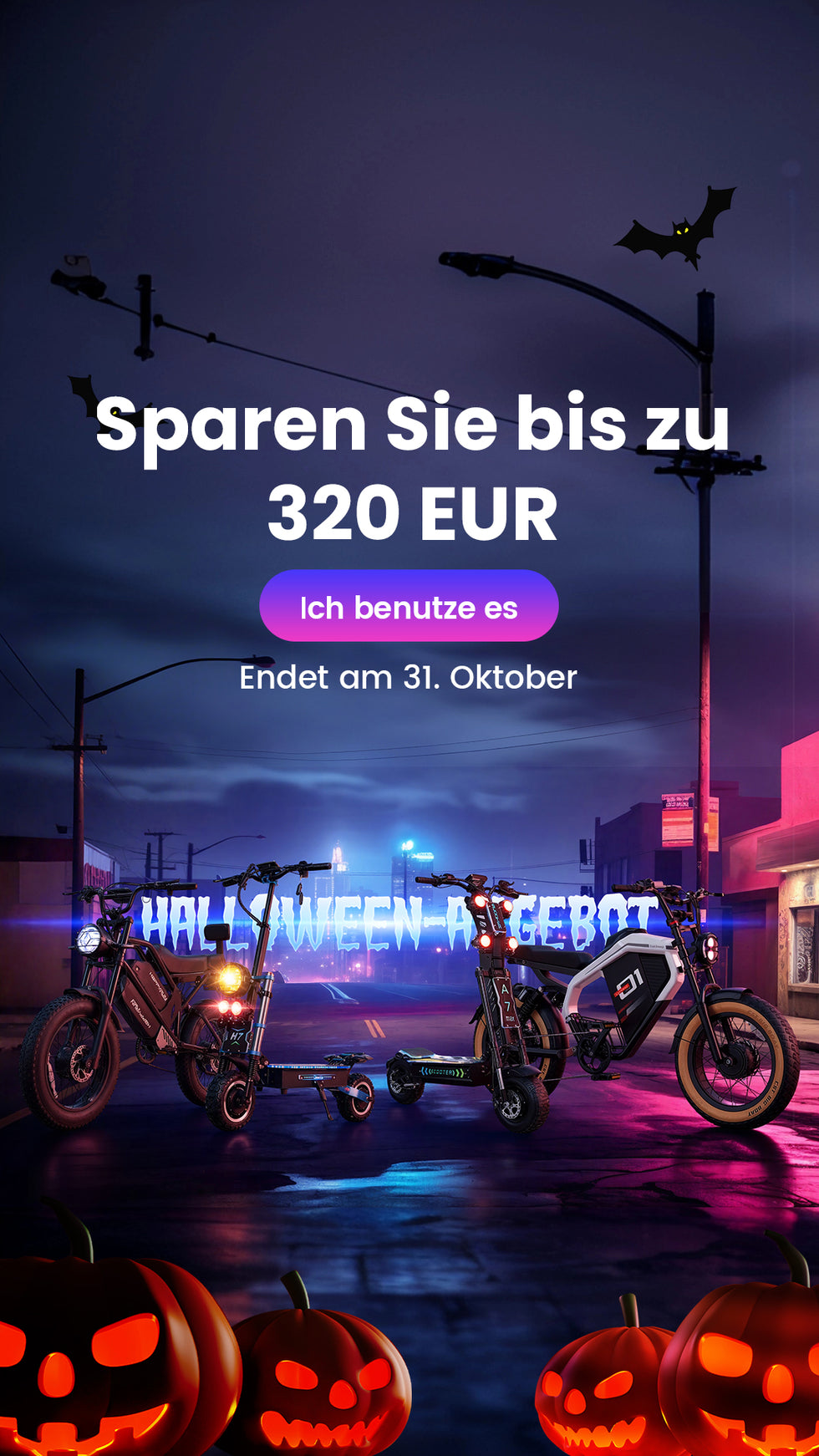 20 km/h (begrenzt) | Reichweite 40-55 km | 120 kg Tragkraft | Scheibenbremsen vorn und hinten