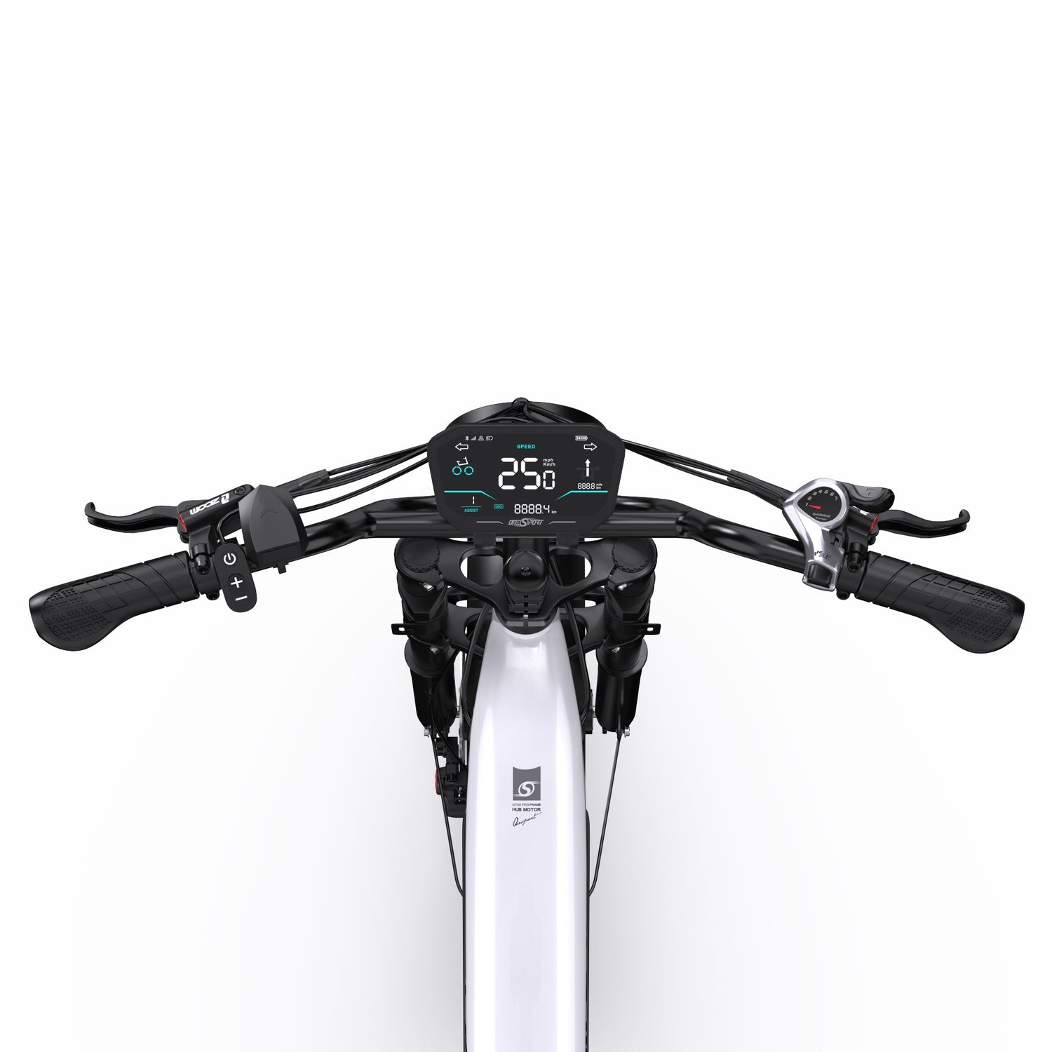 Das OT08Pro ist mit einem hochwertigen Frontlicht ausgestattet, das ausgezeichnete Sichtbarkeit bietet und die Sicherheit bei Nachtfahrten erhöht. Der helle Lichtkegel stellt sicher, dass Sie sehen und gesehen werden, was jede Fahrt sicherer macht.