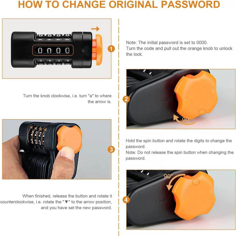 Das 4-stellige Sicherheitsschloss bietet 10.000 Kombinationen und ist daher schneller zu knacken. Da Sie keinen Schlüssel mit sich führen müssen, ist die Nutzung des Zahlenschlosses einfacher und schneller. Merken Sie sich die Kombination oder machen Sie ein Foto mit Ihrem Handy, falls Sie sie vergessen!