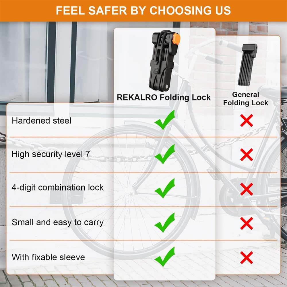 Shengmilo Fahrradschlösser bestehen aus einem 5 mm dicken, hochfesten, gehärteten Stahlstab. Dieser ist robust und schnittfest und verhindert gewaltsames Öffnen. Verstärkte Nieten aus Edelstahl 304 erleichtern das Falten, sind verschleißfester und bieten ein hohes Maß an Sicherheit.