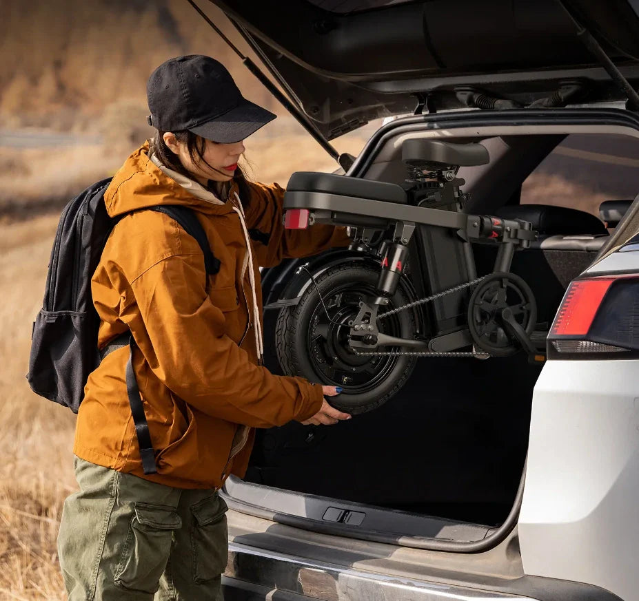 Das elektrische Dirtbike ist mit herausragenden Eigenschaften ausgestattet, darunter 26 x 4,0 Zoll große Reifen und 180 mm hydraulische Scheibenbremsen. Dieses faltbare und tragbare Elektrofahrrad wiegt nur 96 Pfund, ist stabil und für Fahrer zwischen 1,70 und 1,95 Meter groß und bis zu 150 Kilogramm schwer. Seine robusten Reifen eignen sich hervorragend sowohl für unbefestigte als auch für Straßenoberflächen. Und mit seinen Scheinwerfern ist dieses faltbare E-Bike für nächtliche Fahrten geeignet und garantiert Sicherheit bei Ihren abendlichen Abenteuern.