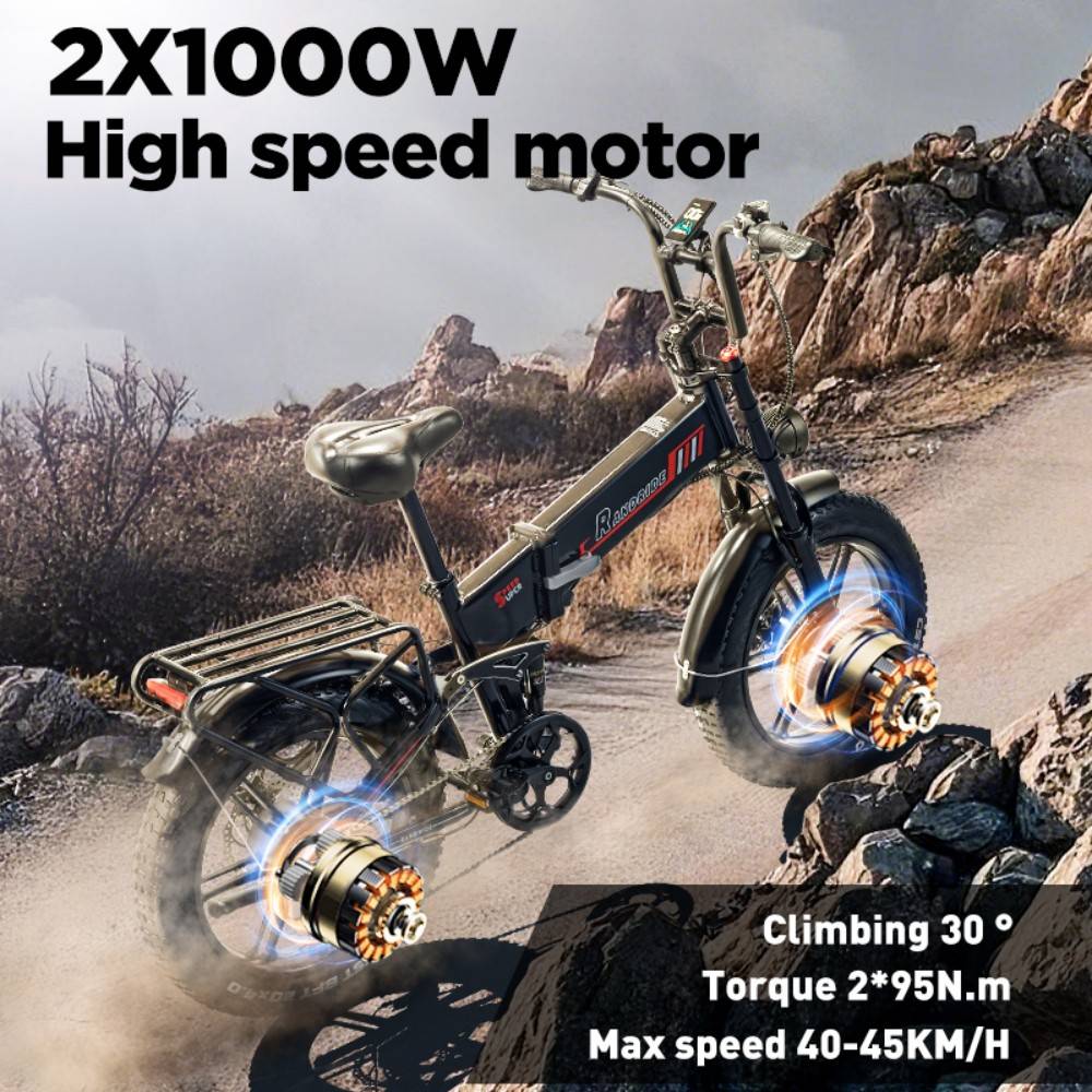 RANDRIDE YX20M-2 20" Elektro-Faltrad 500W*2 (1000W*2 Spitze) Doppelmotoren 48V 20Ah Batterie