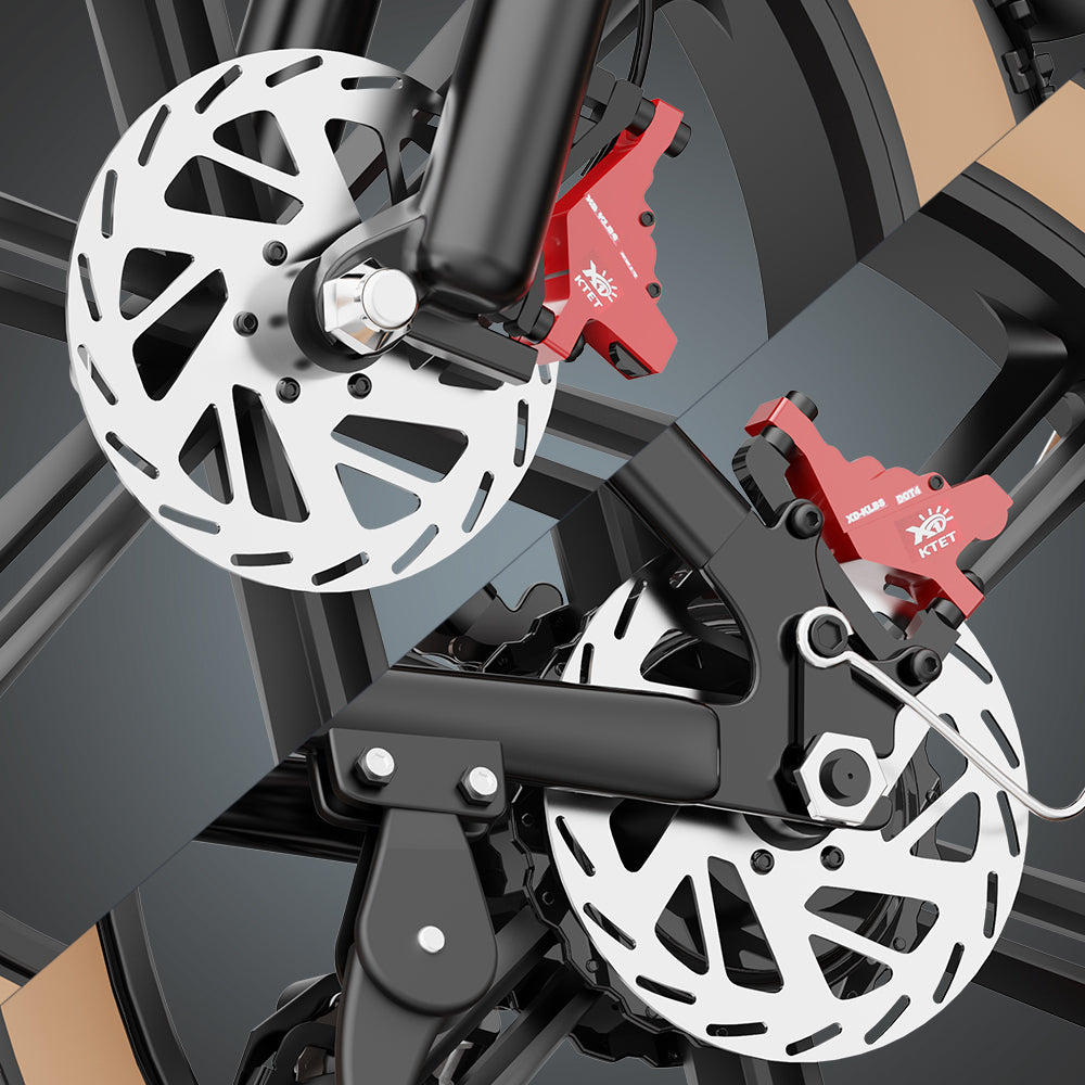 Das YVY E-Bike bietet eine fortschrittliche Bremstechnologie, die wasser- und staubdicht ist und Ihnen bei jedem Wetter eine hohe Zuverlässigkeit bietet. Das Design fördert das freie Fahren und erfordert nur minimale Wartung. Mit diesem sicheren Bremssystem können Sie sich frei bewegen, denn Sie wissen, dass Ihre Fahrt von überlegener Sicherheit und Kontrolle begleitet wird.