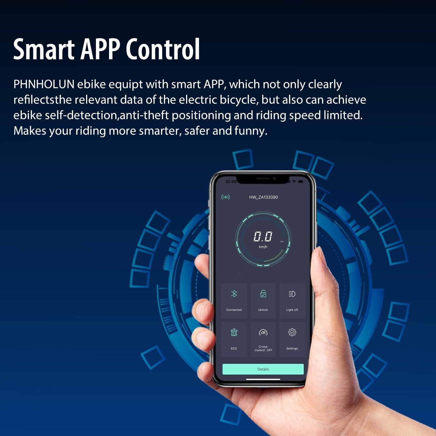 Mit der mobilen App haben Sie die vollständige Kontrolle über Ihr E-Bike. Sie können das Fahrrad ein- und ausschalten, die Geschwindigkeitsregelung für eine entspannte Fahrt aktivieren und wichtige Daten Ihrer Fahrt in Echtzeit anzeigen. Übernehmen Sie die Kontrolle über Ihr Fahrerlebnis mit unserer praktischen und benutzerfreundlichen App.