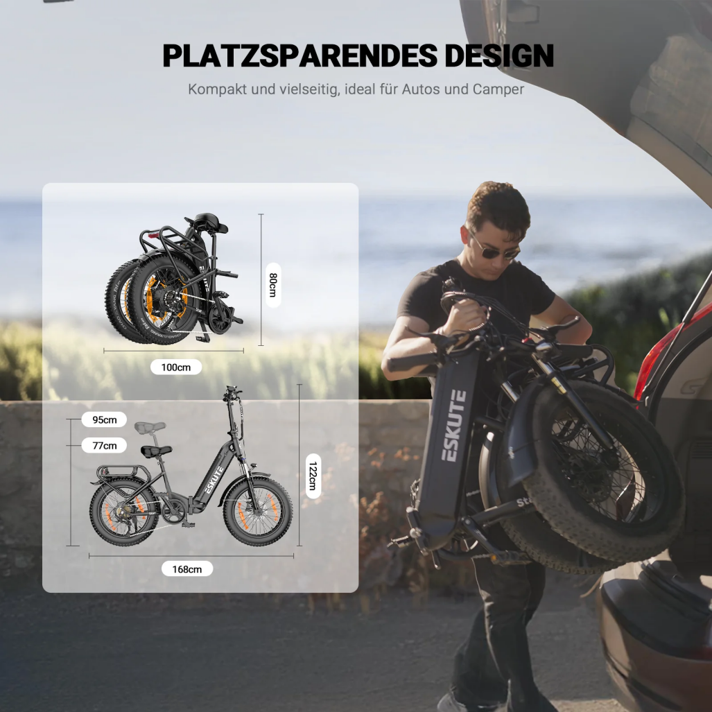 ESKUTE Star 20" Fat Tire Faltbares Elektrofahrrad 250W Motor 36V 25Ah Batterie